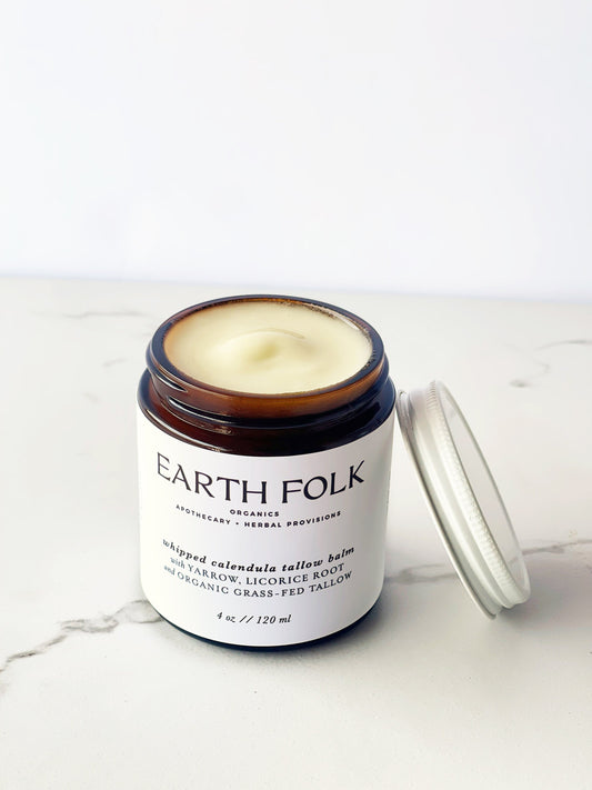 Tallow Balm, Whipped Calendula Tallow Skin Cream, Grass-fed & Finished Tallow, Body Butter, Whipped Tallow, Glass Jar
